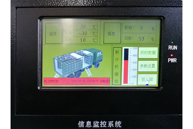 集艙內(nèi)溫度、濕度、制冷機油位、艙門開關狀態(tài)、電瓶電量、燈光管制、車輛底盤信息、制冷機監(jiān)控等功能于一體